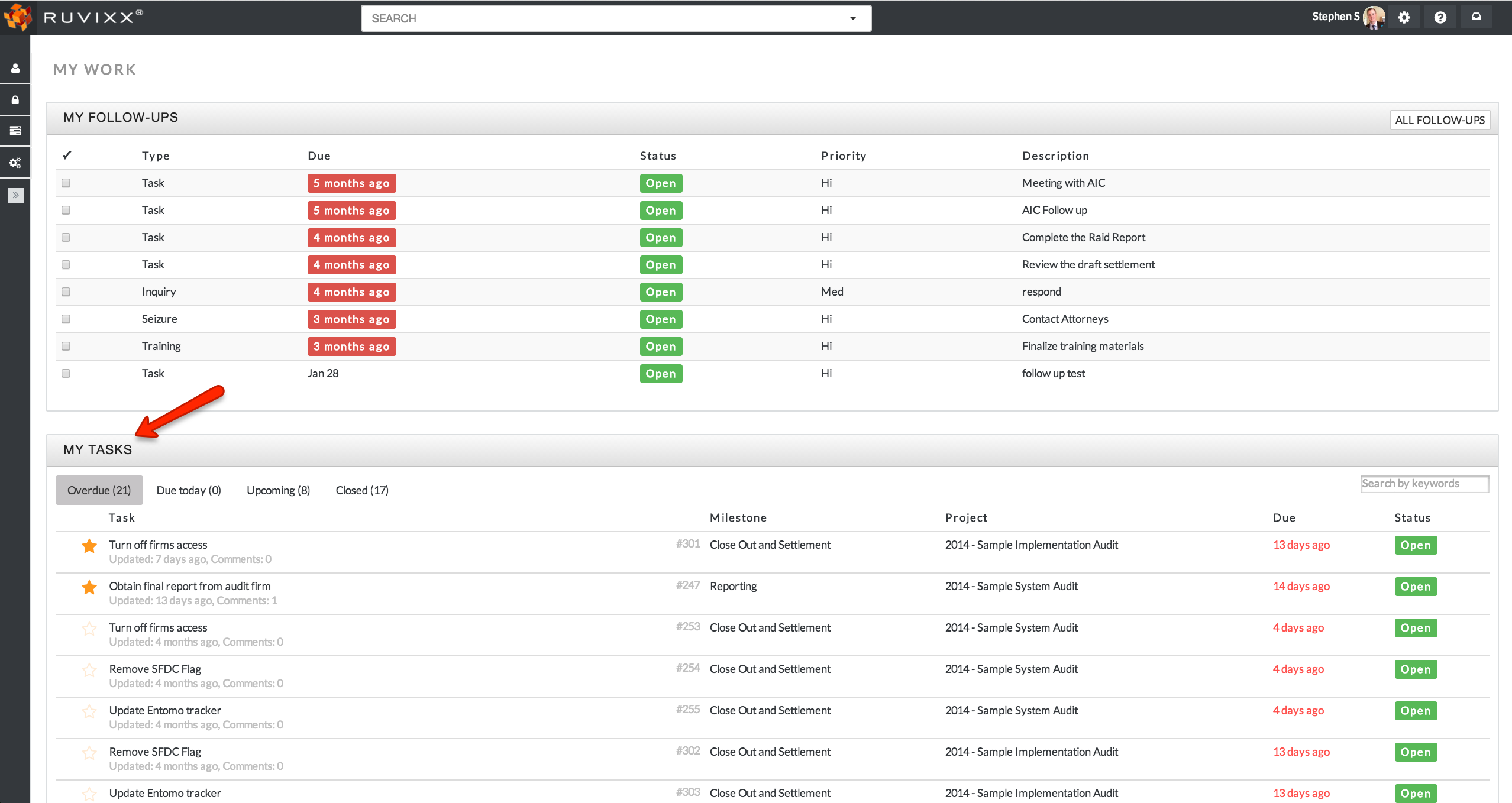 - Tasks identified as high priority will have a gold star