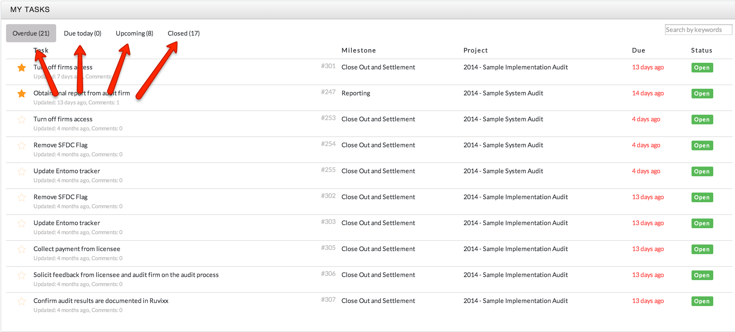 - In My Tasks you can view tasks that have been assigned to you in four categories: