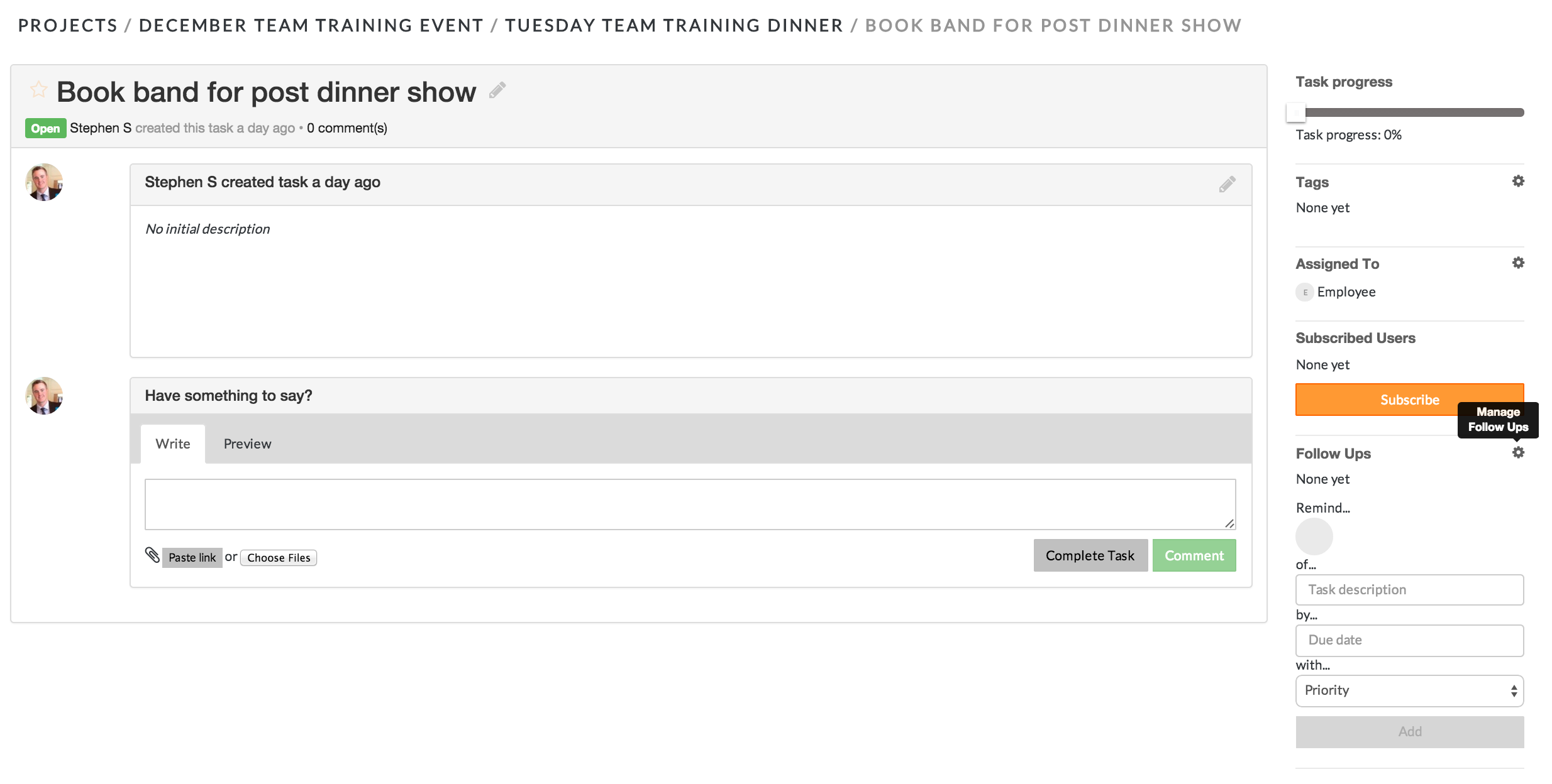 - Select the task for which you want to create a follow-up