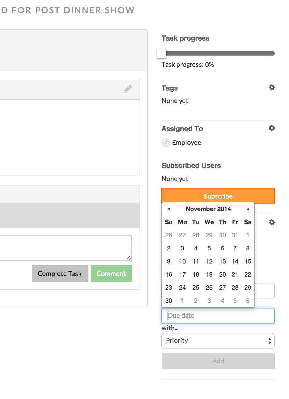 - Click the due date text box. A calendar will display, from which you can select the due date for the follow up