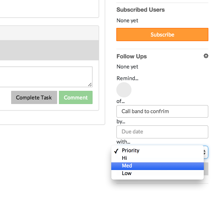 - Click on the priority box to assign a priority for the follow up item
