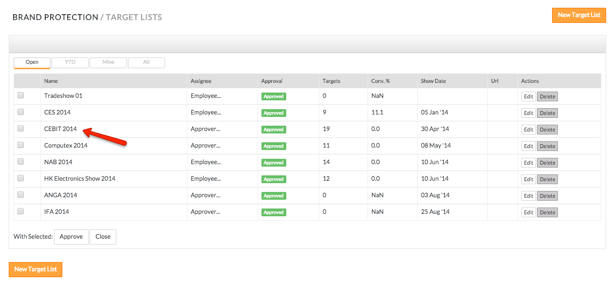- Click on an existing target list record