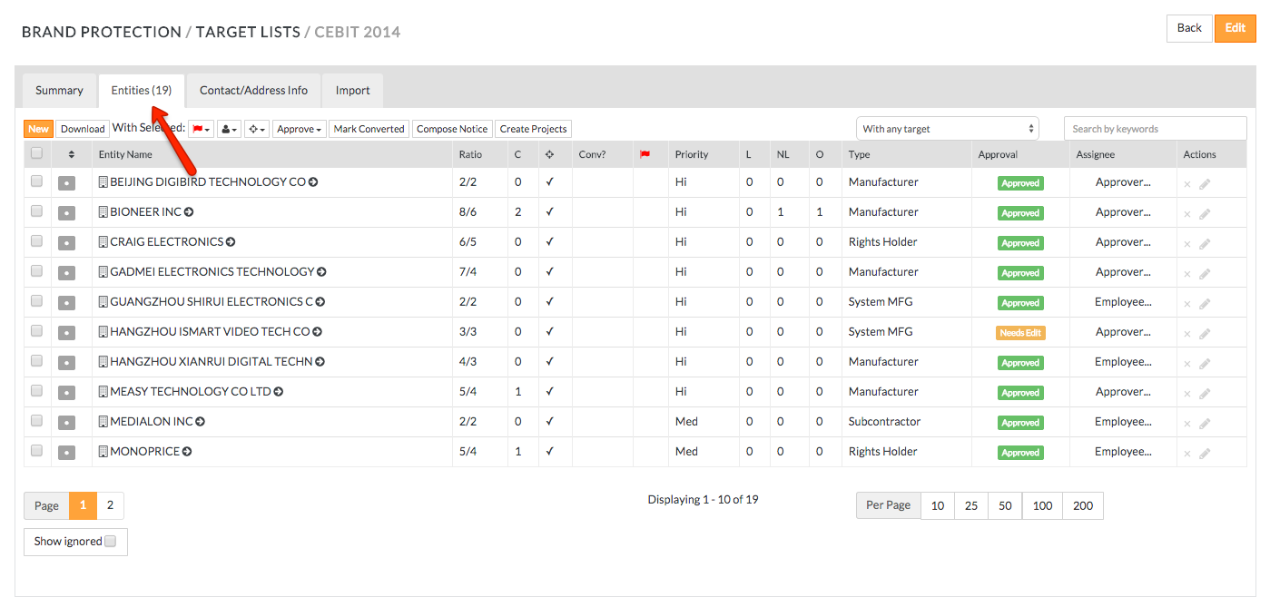 - To download the existing list of exhibitors click Download button in the top left corner