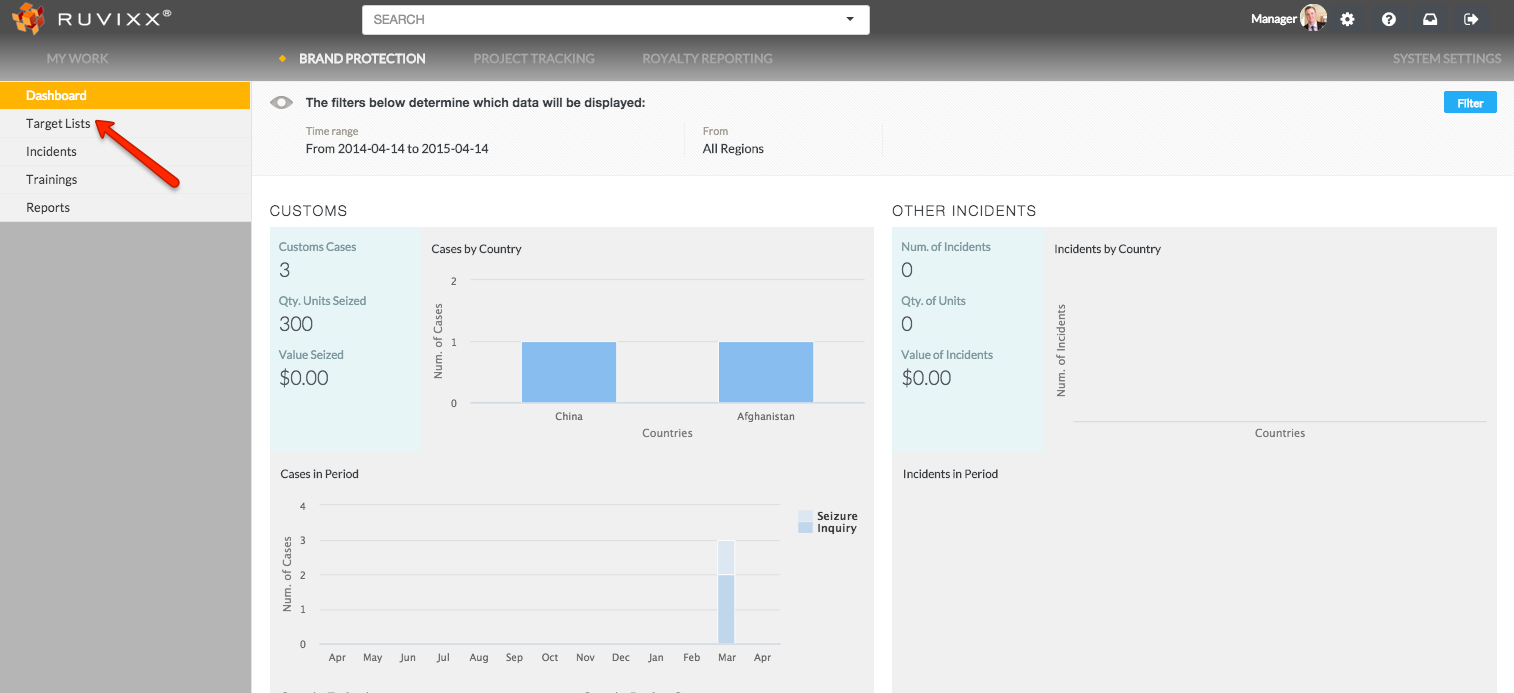 - Click on Target Lists on the left hand navigation pane