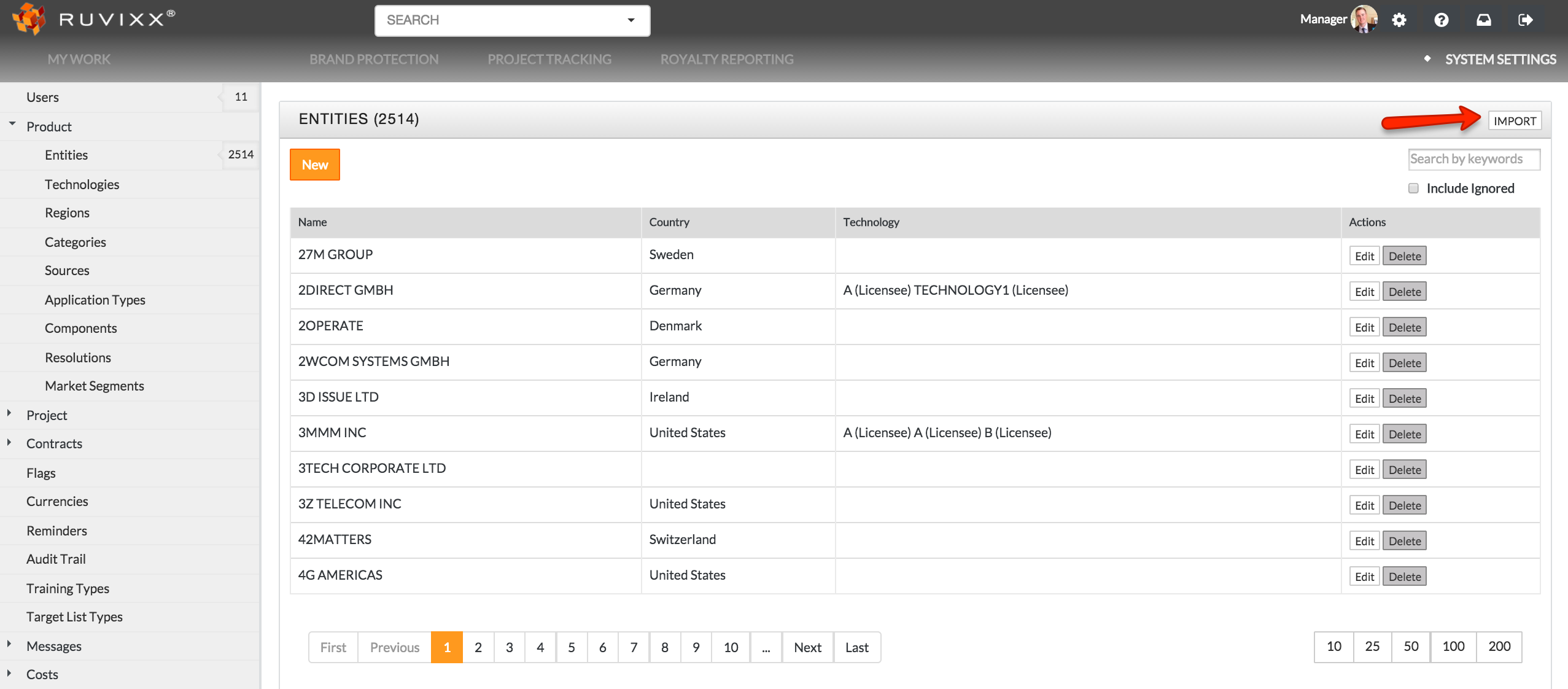 - Click the System Settings on the top right hand corner and select Entities located under the Product category on left hand side